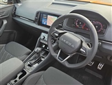 Advanced driver attention and drowsiness monitor, Emergency services call system, Outside temperature gauge, Sensor for driver assistance systems, Service interval indicator, SmartLink wireless for Apple and wired for Android, Start/stop system with regenerative braking, Traffic sign recognition, USB C Port x 2 in front centre console, Virtual Cockpit - 10.25"digital display, Virtual pedal with electrically operated boot door, Wireless smartphone charging, DAB radio with Bluetooth, USB connection, Acoustic glass, Aero front windscreen wipers with intermittent function, Auto dimming rear view mirror with light and rain sensors, Black door mirrors, Black electric window control buttons, Black radiator grille, Black roof rails, Body colour door handles, Electric front and rear windows with child proof lock, Extended rear roof spoiler, Front door steps with SportLine logo, Heated rear windscreen, LED daytime running lights, LED rear lights with high functionality welcome effect and dynamic indicators, Light assistant (coming/leaving home/tunnel light), Panoramic sliding sunroof, Plastic scuff plates in door apertures, Privacy glass, Protective door side sills in body colour, Rear diffuser, Rear side wing doors, Rear window wiper with washer system and intermittent control, Safety reflectors on front doors, Skoda lettering on tailgate in black, Sportline badge on front fender, Sports front and rear bumpers, Third brake light, Unique dark chrome design logo on alloy wheels, 1.5 litre bottle holders in driver and front passenger door panels, 12V socket in boot, 12v socket in front centre armrest with storage compartment and rear air vents, 2 x Tablet holder, 3 rear height adjustable headrests, 3 seat bench in 2nd row, 3 spoke sports leather heated multifunction steering wheel with DSG paddles, 4 foldable roof handles with rear coat hooks, Black floor carpet, Cargo elements in boot, Chrome inner door handles, Foldable hooks in the boot, Front head restraints, Height adjustable front three point seats belts with tensioners, Height/reach adjust steering wheel, Ice scraper, Illuminated glovebox, Illuminated luggage compartment, Isofix child seat preparation for front passenger seat, Isofix child seat preparation outer rear, Manual lumbar support for front seats, Pen holder, Pollen filter, Rear backrest release from boot, Rear boot cover, Rear package tray, Rear reading lights, Rear seats fixed folding and divided 60:40, Rubbish bin door, Safety vest holder, Single front passenger seat, Skoda lettering on steering wheel, Sportline decorative inserts, Storage box in upper central dashboard closed, Sunvisors with illuminated vanity mirrors, Textile floor mats, Ticket holder, Titan black interior ceiling, Umbrella under passenger seat, Under passenger seat storage compartment, Columbus pack - Karoq, LED Interior lighting pack with Skoda welcome logo - Karoq, Light Pack - Karoq, Non Smokers pack, Performance pack - Karoq, Winter plus pack with heated front and rear seats - Karoq, Automatic door unlocking in case of crash, Automatic fuel cut off in case of crash, Driver airbag, Electronic parking brake with auto hold function, Emergency rear braking signal, ESC (incl. ABS+MSR+ASR+EDS+HBA+DSR+RBS+MKB), Front side airbags, Head airbags, Hill hold control, Knee airbags, Passenger airbag with switch-off function, Pedestrian monitor, Power operated child safety locks, Seatbelt reminder signalisation and pretensioner for all seats, Three point seatbelts rear, Two tone horn, Tyre pressure monitor, Alarm with interior monitoring, back up horn and tilt sensor with safe function, Electronic engine immobiliser, Keyless entry and start/stop, Remote central locking with 2 remote folding keys, Black air vent surround, Black centre console, carbon door decor, Satin black dashboard, Satin black door trim, 19"Sagittarius anthracite alloy wheels, Anti-theft wheel bolts protection, Breakdown and tool kit,