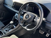8"Digital display, Care connect, Driver fatigue sensor, Emergency services call system, Outside temperature gauge, Service interval indicator, SmartLink wireless for Apple and wired for Android, Start/stop system with regenerative braking, USB C Port x 2 in front centre console, Virtual cockpit, Virtual pedal with electrically operated boot door, 8 Speakers, DAB radio with Bluetooth, USB connection, Wireless charging without wireless aerial connection, Acoustic glass, Aero front windscreen wipers with intermittent function, Auto dimming rear view mirror with light and rain sensors, Black door mirrors, Black electric window control buttons, Black radiator grille, Black roof rails, Body colour door handles, Electric front and rear windows with child proof lock, Front door steps with SportLine logo, Heated rear windscreen, LED daytime running lights, LED rear lights with high functionality welcome effect and dynamic indicators, Light assistant (coming/leaving home/tunnel light), Panoramic sliding sunroof, Plastic scuff plates, Privacy glass, Protective door side sills in body colour, Rear diffuser, Rear side wing doors, Rear spoiler, Rear window wiper with washer system and intermittent control, Safety reflectors on front doors, Skoda lettering on tailgate in black, Sportline badge on front fender, Sportline decorative inserts with badging, Sports front and rear bumpers, 1.5 litre bottle holders in driver and front passenger door panels, 12V socket in boot, 12v socket in front centre armrest with storage compartment and rear air vents, 3 rear height adjustable headrests, 3 seat bench in 2nd row, 3 spoke leather sports multifunction steering wheel and silver stitching with gear shift paddles, 4 foldable roof handles with rear coat hooks, Black floor carpet, Black roof headlining, Chrome inner door handles, Double sided boot floor, Foldable hooks in the boot, Front head restraints, Height adjustable front three point seats belts with tensioners, Height/reach adjust steering wheel, Ice scraper, Illuminated glovebox, Illuminated luggage compartment, Isofix child seat preparation outer rear, Manual lumbar support for front seats, Pen holder, Pollen filter, Rear boot cover, Rear reading lights, Rear seats fixed folding and divided 60:40, Rubbish bin door, Safety vest holder, Single front passenger seat, Storage box in upper central dashboard closed, Sunvisors with illuminated vanity mirrors, Textile floor mats, Ticket holder, Titan black interior ceiling, Welcome animation with sportline logo, Boot pack - Karoq, Light Pack - Karoq, Parking pack - Karoq, Automatic door unlocking in case of crash, Automatic fuel cut off in case of crash, Child locks on rear doors, Driver airbag, Electronic parking brake with auto hold function, Emergency rear braking signal, ESC including ABS, MSR, ASR, EDS, HBA, DSR, RBS, MKB and traction control, Front side airbags, Hill hold control, Knee airbags, Passenger airbag with switch-off function, Pedestrian monitor, Seatbelt reminder signalisation and pretensioner for all seats, Three point seatbelts rear, Two tone horn, Tyre pressure display, Tyre pressure monitor, Alarm with interior monitoring, back up horn and tilt sensor with safe function, Electronic engine immobiliser, Keyless entry and start/stop, Remote central locking with 2 remote folding keys, Black air vent surround, Black centre console, Satin black dashboard, Satin black door trim, 19"Sagitarius anthracite alloy wheels with matt black aero inserts, Anti-theft wheel bolts protection, Matt black aero hub caps, Storage on wheel cover, Tool kit,