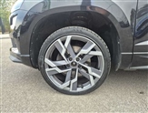 8"Digital display, Care connect, Colour multifunction trip computer, Driver fatigue sensor, Emergency services call system, Outside temperature gauge, Service interval indicator, SmartLink wireless for Apple and wired for Android, Start/stop system with regenerative braking, USB C Port x 2 in front centre console, Virtual pedal with electrically operated boot door, 8 Speakers, DAB radio with Bluetooth, USB connection, Acoustic glass, Aero front windscreen wipers with intermittent function, Auto dimming rear view mirror with light and rain sensors, Automatic headlight control system, Black door mirrors, Black electric window control buttons, Black radiator grille, Black roof rails, Body colour door handles, Electric front and rear windows with child proof lock, Front door steps with SportLine logo, Heated rear windscreen, LED daytime running lights, LED rear lights with high functionality welcome effect and dynamic indicators, Light assistant (coming/leaving home/tunnel light), Panoramic sliding sunroof, Plastic scuff plates, Privacy glass, Protective door side sills in body colour, Rear diffuser, Rear side wing doors, Rear spoiler, Rear window wiper with washer system and intermittent control, Safety reflectors on front doors, Skoda lettering on tailgate in black, Sportline badge on front fender, Sportline decorative inserts with badging, Sports front and rear bumpers, 1.5 litre bottle holders in driver and front passenger door panels, 12V socket in boot, 12v socket in front centre armrest with storage compartment and rear air vents, 2 Folding hooks and nets in boot, 3 rear height adjustable headrests, 3 seat bench in 2nd row, 3 spoke leather sports multifunction steering wheel and silver stitching with gear shift paddles, 4 foldable roof handles with rear coat hooks, Black floor carpet, Black roof headlining, Chrome inner door handles, Double sided boot floor, Foldable hooks in the boot, Front head restraints, Height adjustable front three point seats belts with tensioners, Height/reach adjust steering wheel, Ice scraper, Illuminated glovebox, Illuminated luggage compartment, Isofix child seat preparation outer rear, Manual lumbar support for front seats, Pen holder, Pollen filter, Rear boot cover, Rear reading lights, Rear seats fixed folding and divided 60:40, Rubbish bin door, Safety vest holder, Single front passenger seat, Storage box in upper central dashboard closed, Sunvisors with illuminated vanity mirrors, Textile floor mats, Ticket holder, Titan black interior ceiling, Welcome animation with sportline logo, Light Pack - Karoq, Parking pack - Karoq, Automatic door unlocking in case of crash, Automatic fuel cut off in case of crash, Child locks on rear doors, Driver airbag, Electronic parking brake with auto hold function, Emergency rear braking signal, ESC including ABS, MSR, ASR, EDS, HBA, DSR, RBS, MKB and traction control, Front side airbags, Hill hold control, Knee airbags, Passenger airbag with switch-off function, Pedestrian monitor, Seatbelt reminder signalisation and pretensioner for all seats, Three point seatbelts rear, Two tone horn, Tyre pressure display, Tyre pressure monitor, Alarm with interior monitoring, back up horn and tilt sensor with safe function, Electronic engine immobiliser, Keyless entry and start/stop, Remote central locking with 2 remote folding keys, Black air vent surround, Black centre console, Satin black dashboard, Satin black door trim, 19"Sagitarius anthracite alloy wheels with matt black aero inserts, Anti-theft wheel bolts protection, Matt black aero hub caps, Storage on wheel cover, Tool kit,