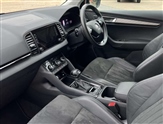 8"Digital display, Care connect, Driver fatigue sensor, Emergency services call system, Outside temperature gauge, Service interval indicator, SmartLink wireless for Apple and wired for Android, Start/stop system with regenerative braking, USB C Port x 2 in front centre console, 8 Speakers, DAB radio with Bluetooth, USB connection, Acoustic glass, Aero front windscreen wipers with intermittent function, Auto dimming rear view mirror with light and rain sensors, Black electric window control buttons, Body colour door mirrors and handles, Dynamic headlight range control with cornering light function, Electric front and rear windows with child proof lock, Heated rear windscreen, LED daytime running lights, LED rear lights with high functionality welcome effect and dynamic indicators, Light assistant (coming/leaving home/tunnel light), Plastic scuff plates, Privacy glass, Rear side wing doors, Rear spoiler, Rear window wiper with washer system and intermittent control, Safety reflectors on front doors, 1.5 litre bottle holders in driver and front passenger door panels, 12V socket in boot, 12v socket in front centre armrest with storage compartment and rear air vents, 2 spoke leather heated multifunction steering wheel with DSG paddles, 2 x Tablet holder, 3 rear height adjustable headrests, 3 seat bench in 2nd row, 4 foldable roof handles with rear coat hooks, Black floor carpet, Chrome inner door handles, Double sided boot floor, Foldable hooks in the boot, Front head restraints, Height adjustable front three point seats belts with tensioners, Height/reach adjust steering wheel, Ice scraper, Illuminated glovebox, Illuminated luggage compartment, Isofix child seat preparation for front passenger seat, Isofix child seat preparation outer rear, Manual lumbar support for front seats, Pen holder, Pollen filter, Rear boot cover, Rear reading lights, Rubbish bin door, Safety vest holder, Single front passenger seat, Storage box in upper central dashboard closed, Sunvisors with illuminated vanity mirrors, Textile floor mats, Ticket holder, VarioFlex seats with standard rear seat release, Boot pack - Karoq, Design Pack - Karoq, Parking pack - Karoq, Automatic door unlocking in case of crash, Automatic fuel cut off in case of crash, Child locks on rear doors, Driver airbag, Electronic parking brake with auto hold function, Emergency rear braking signal, ESC including ABS, MSR, ASR, EDS, HBA, DSR, RBS, MKB and traction control, Front side airbags, Hill hold control, Knee airbags, Passenger airbag with switch-off function, Pedestrian monitor, Seatbelt reminder signalisation and pretensioner for all seats, Three point seatbelts rear, Two tone horn, Tyre pressure display, Tyre pressure monitor, Alarm with interior monitoring, back up horn and tilt sensor with safe function, Electronic engine immobiliser, Keyless entry and start/stop, Remote central locking with 2 remote folding keys, Chrome framed air vents, 18"Miran alloy wheels in black, Anti-theft wheel bolts protection, Tool kit,