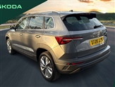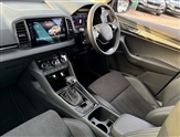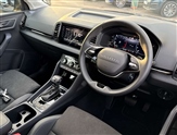 Advanced driver attention and drowsiness monitor, Drive Mode Selection including ECO function, Electro-mechanical PAS, Emergency services call system, Outside temperature gauge, Sensor for driver assistance systems, Service interval indicator, SmartLink wireless for Apple and wired for Android, Start/stop system with regenerative braking, Traffic sign recognition, USB C Port x 2 in front centre console, Virtual Cockpit - 10.25"digital display, Virtual pedal with electrically operated boot door, Wireless smartphone charging, DAB radio with Bluetooth, USB connection, Acoustic glass, Aero front windscreen wipers with intermittent function, Auto dimming rear view mirror with light and rain sensors, Black electric window control buttons, Body colour door mirrors and handles, Electric front and rear windows with child proof lock, Extended rear roof spoiler, Heated rear windscreen, LED daytime running lights, LED rear lights with high functionality welcome effect and dynamic indicators, Light assistant (coming/leaving home/tunnel light), Plastic scuff plates in door apertures, Privacy glass, Rear side wing doors, Rear window wiper with washer system and intermittent control, Safety reflectors on front doors, Third brake light, Unique dark chrome design logo on alloy wheels, 1.5 litre bottle holders in driver and front passenger door panels, 12V socket in boot, 12v socket in front centre armrest with storage compartment and rear air vents, 2 spoke leather heated multifunction steering wheel with DSG paddles, 2 x Tablet holder, 3 rear height adjustable headrests, 3 seat bench in 2nd row, 4 foldable roof handles with rear coat hooks, Black floor carpet, Cargo elements in boot, Chrome inner door handles, Foldable hooks in the boot, Front head restraints, Height adjustable front three point seats belts with tensioners, Height/reach adjust steering wheel, Ice scraper, Illuminated glovebox, Illuminated luggage compartment, Interior noise suppression, Isofix child seat preparation for front passenger seat, Isofix child seat preparation outer rear, Manual lumbar support for front seats, Pearl grey interior ceiling, Pen holder, Pollen filter, Rear boot cover, Rear package tray, Rear reading lights, Rubbish bin door, Safety vest holder, Single front passenger seat, Skoda lettering on steering wheel, Storage box in upper central dashboard closed, Sunvisors with illuminated vanity mirrors, Textile floor mats, Ticket holder, Columbus pack - Karoq, Design Pack - Karoq, Non Smokers pack, Parking pack - Karoq, Automatic door unlocking in case of crash, Automatic fuel cut off in case of crash, Driver airbag, Electronic parking brake with auto hold function, Emergency rear braking signal, ESC (incl. ABS+MSR+ASR+EDS+HBA+DSR+RBS+MKB), Front side airbags, Head airbags, Hill hold control, Knee airbags, Passenger airbag with switch-off function, Pedestrian monitor, Seatbelt reminder signalisation and pretensioner for all seats, Three point seatbelts rear, Two tone horn, Tyre pressure monitor, Alarm with interior monitoring, back up horn and tilt sensor with safe function, Electronic engine immobiliser, Keyless entry and start/stop, Remote central locking with 2 remote folding keys, Black centre console, Chrome framed air vents, Satin black dashboard, Anti-theft wheel bolts protection, Breakdown and tool kit,