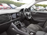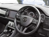Bluetooth system, Columbus satellite navigation with 9.2"touch screen and integrated Wi-Fi + WLAN, Digital voice enhancement, ECO Stop/start function, Exterior temperature indicator, SmartLink plus, Speed limiter, Bolero Radio, DAB Digital radio, DVD System, USB and SD card connectivity, Aero front windscreen wipers with intermittent function, Aero rear window wiper, Auto dimming rear view mirror, Automatic activation of hazard warning lights, Black wheel arch surrounds, Body colour bumpers, Body colour door mirrors and handles, Electric front and rear windows, Electrically adjustable heated foldable and auto dimming door mirrors with boarding spots, Front and Rear door steps, Full LED Headlights with adaptive front light system and LED daytime running lights, Headlight washers, Heated rear window, Invisible tailpipe, LED front fog lights with static cornering light function, LED rear fog light, LED third brake light in rear spoiler, Light assistant (coming home/tunnel light), Radiator grille frame in matt black with chrome strip, Rain and light sensors, Rear spoiler, Safety reflectors on front and rear doors, Sunset privacy glass, Tinted windows, 12V socket in boot, 2 rails with 2 hooks including 4 hooks for net programme, 4 foldable roof handles with rear coat hooks, 4 lashing points on luggage floor, 60:40 foldable rear seat with sliding adjustment and backrest angle adjustment, Bottle holders in door panel in the 1.5 litre front and 1 litre rear, Cargo storage compartments, Centre console with open storage box, cup holder and 12V socket, Chrome headlight control button, Chrome interior door handles, Coat hooks on B pillar, Covered storage compartment on driver side, Drawers under driver and front passenger seats, Front centre armrest with storage compartment, Front/rear courtesy lights, Gear shift lever with chrome frame and black gloss insert, Height adjustable front headrests, Illuminated and cooled glovebox, Illuminated luggage compartment, Isofix system on outer rear seats, Manually adjustable steering column, Net programme in boot (1x horizontal Net, 2x vertical Nets), Overhead glasses storage compartment, Passenger side net compartment on centre console, Pollen filter, Rear centre armrest with cupholders, Removable lamp in luggage compartment, Roll up luggage compartment cover with intermediate position, Small Bags on the inner sides of the front backrests, Small pockets on the inner side of the front backrests, Storage compartment in lower middle Instrument panel, illuminated with closing, Sunvisors with illuminated vanity mirrors, Three rear height adjustable headrests, Ticket holder on A Pillar, Umbrella in door panel, Chrome pack - Kodiaq, Auto door release and activation of warning lights, Driver and passenger airbags, Electronic parking brake with hill hold control, Emergency rear braking signal, ESC (incl. ABS+MSR+ASR+EDS+HBA+DSR+RBS+MKB), Front and rear three point safety belt on all seats, Front assist includes AEB city/urban, Front side airbags, Fuel cut off safety device, Head and knee airbags, Passenger airbag deactivate switch, Rear disc brakes, Safety vest holder in door, Seat belt reminder for all seats, Tailgate unlocking from outside, Two tone horn, Tyre pressure monitor, Warning lights in front doors, Alarm with interior monitoring and tilt sensor with safe function, Immobiliser, Keyless entry and start system (KESSY), Remote central locking,