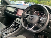 Bluetooth system, Columbus satellite navigation with 9.2"touchscreen, integrated Wi-Fi, web radio, E-call, ECO Stop/start function, Exterior temperature indicator, Progressive steering, Rear view camera, Smartlink wireless for apple carplay and wired for android auto, Speed limiter, Tailgate unlocking from outside, USB C Port x 2 in front centre console, Wireless charging, 8 Speakers, DAB Digital radio, Aero front windscreen wipers with intermittent function, Aero rear window wiper, Auto dimming rear view mirror, Black roof rails, Black sports styling including front grille and window surrounds, Black wheel arch surrounds, Body colour bumpers, Body colour door handles, Electric front and rear windows, Extended rear spoiler with finlets in gloss black, Front fog lights, Full LED matrix headlights with AFS (adaptive front light system), cornering function and AWL (all weather lighting system), Gloss black door mirrors, Headlight washers, Heated rear window, Invisible tailpipe, LED daytime running lights, LED rear fog light, LED third brake light in rear spoiler, Light assistant (coming/leaving home/tunnel light), Off-road style lower front bumper element, Privacy glass, Rain and light sensors, Rear diffuser, Rear LED lights (high functionality) with welcome effect and dynamic indicators, Safety reflectors on front and rear doors, Sportline badge on front fender, Sports front and rear bumpers including lower rear chrome strip, Tailgate lettering in Black, Window control switches with black trim, 12V socket in boot, 2 rails with 2 hooks, 4 foldable roof handles with rear coat hooks, 60:40 foldable rear seat with sliding adjustment and backrest angle adjustment, Aluminium pedals, Black roof headlining, Bottle holders in door panel in the 1.5 litre front and 1 litre rear, Cargo storage compartments, Chrome headlight control button, Chrome interior door handles, Coat hooks on B pillar, Covered storage compartment on driver side, Decorative door sills in the front and rear, Front centre armrest with storage compartment, cup holder and 12V socket, Front courtesy lights, Gear shift lever with chrome frame and black gloss insert, Grey stitching in front and rear armrests and door armrests + door inserts, Height adjustable front headrests, Illuminated and cooled glovebox, Illuminated luggage compartment, Isofix child seat fittings in outer rear seats with top tether, Manually adjustable steering column, Microsuede door panels, Net programme in boot (1x horizontal Net, 2x vertical Nets), Overhead glasses storage compartment, Pollen filter, Rear centre armrest with cupholders, Sliding trunk cover, Small Bags on the inner sides of the front backrests, Sports seats, Sunvisors with illuminated vanity mirrors, Three rear height adjustable headrests, Ticket holder on A Pillar, Umbrella in door panel, Variable boot floor, LED Interior light pack - Kodiaq, Auto door release and activation of warning lights in the event of an accident, Driver and front passenger airbag with knee airbag and front passenger airbag deactivation, Electronic parking brake with hill start assist, Emergency rear braking signal, ESC (incl. ABS+MSR+ASR+EDS+HBA+DSR+RBS+MKB), Front assist with autonomous emergency braking, Front side airbags with curtain airbags, Fuel cut off safety device, Height adjustable front 3 point seatbelts + pretensioners, Hill hold control, Rear disc brakes, Safety vest holder in door, Seat belt reminder for all seats, Three point rear seat belts, Two tone horn, Tyre pressure monitor, Alarm with interior monitoring and tilt sensor with safe function, Anti-theft wheel bolts, Immobiliser, Keyless entry and start system (KESSY), Remote central locking with 2 keys, Black air vent surround, Carbon finish dashboard and door inserts, Grey stitching in dashboard, 20"Vega Anthracite alloy wheels, Temporary spare wheel (space saver),