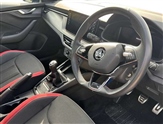 Amundsen satellite navigation with 9.2"glass colour touchscreen with virtual cockpit, web radio and traffic sign recognition, Bluetooth system, Easy light assist, Front assist system, Lane assist, Monte carlo instrument cluster, PAS, Rain and light assist with auto dimming rear view mirror, Speed limiter, 2 USB - C ports, 8 loudspeakers, DAB Digital radio, Black door mirrors, Black radiator grille, Black rear diffuser, Black roof spoiler, Black sill cover, Body colour door handles, Boot lettering in black, Electric folding door mirrors, Electrically adjustable and heated door mirrors, Front and rear electric windows, Front fog lights, Front sport bumper, LED daytime running lights, Monte carlo plaque, Privacy glass, Skoda across tailgate in black, Tinted windows, 12V Accessory socket in centre console, Aluminium pedals, Black roof lining, Chrome inner door handles, Cloth upholstery, Decor strip on dashboard and door panel, Door sills with lettering, Front centre armrest with stitching, Front gesture control, Front head restraints, Front sport seats, Glasses storage in roof liner, Height adjustable passenger seat, ISOFIX for rear passenger seat, Leather gearknob and handbrake lever, Manual lumbar support for front seats, Reading lights for driver and front passenger, Sun visor with make up mirror for front passenger, Textile floor mats, Third rear headrest, Umbrella, Exterior design pack - Scala, 3x3 point rear seatbelts, Curtain airbags, Emergency call and proactive services, Front head and side airbags, Hill hold control, One tone horn, Passenger airbag switch off function, Seat belt reminder for all seats, Alarm, Anti-theft wheel bolts, Remote central locking with 2 remote folding keys, SAFE function for remote central locking, Chrome air vent surrounds, 18"Vega alloy wheels in black, Temporary space saver wheel,
