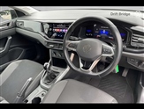Adaptive cruise control without follow-to-stop and speed limiter, Bluetooth mobile phone interface, Driver alert system, Emergency call service, Front assist system, Power assisted speed sensitive steering, Preparation for We connect and We connect plus, Speedo and rev counter, electronic odometer, trip, service interval display and fuel gauge, Standard rear axle, Travel Assist - Lane keeping system and traffic jam assist, Travel assist including emergency assist, Trip computer, Warning signal and warning light for front and rear seatbelts not fastened, Washer fluid level indicator, Wireless app connect, Front wheel drive, Rear shock absorpion, Start-stop system with battery regeneration (recuperation - energy recovery during braking), DAB Digital radio, Diversity antenna for FM reception, Automatic dimming interior rear view mirror, Body colour bumpers, Body colour door handles, Body colour door mirrors, Electric front windows, Heat insulating darkened glass in side and rear windows, Heat insulating glass windscreen, Power folding adjustable/heated exterior mirrors and front passenger exterior mirror lowering function, Rain sensor, Rear electric windows, Rear fog light, Rear windscreen washer and wiper with interval delay, Third brake light, 12V power socket in centre console, 2 front and 2 rear reading lights, 2 USB-C ports in the front, 2 USB-C charging sockets on the center console in the rear, 3 rear head restraints, 60/40 split folding rear seat and rear seat bench not split, Ceramique headliner, Chrome plated radiator grille inserts, air vent surrounds and light switch surrounds, Door and side trim panel, Driver and front passenger seat height adjustment, Driver/passenger sunvisors with illuminated vanity mirrors, Front centre armrest, Front seat backrest storage pockets, Front standard seats, Handbrake lever handle in leather, Hartley/Thomas cloth upholstery, Isofix child seat preparation easy-fit (for two outer rear seats, and front passenger seat) compatible with I-size, Leather trimmed gear knob, Luggage compartment cover, Luggage compartment floor, Luggage compartment lighting, Multifunction steering wheel, Standard pedal cluster, Light and vision pack - Polo, 3 point height adj front seatbelts + pretensioners, 3x3 point rear seatbelts, ABS, Driver and front passenger airbag with front passenger airbag deactivation, Drivers and front passengers safety optimised head restraints, ESC (Electronic stability control) + EDL (Electronic Differntial lock) and ASR (Traction control), Extended and predictive pedestrian/ cyclist protection, Front curtain and side airbags with center airbag, Front disc brakes, Hill hold control, Rear drum brakes, Single tone horn, Tyre pressure loss indicator, Alarm with interior protection, Anti-theft alarm system with interior monitoring, backup horn, and towing protection, Anti-theft wheel bolts, Electronic engine immobiliser, Lava stone black gloss/matt decorative inserts in dash and front door panels, Low rolling resistance tyres,