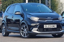 Kia Picanto 1.0 X-Line S 5dr Auto 5 Door in black, 8"touch screen satellite naviagtion with RDS and DAB with telematics, Apple car play/Android Auto with voice control, Cruise control + speed limiter, Emergency call service, Emergency stop signalling