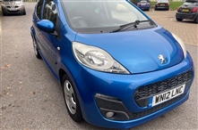 Peugeot 107 1.0 12V Allure Euro 5 5dr in Blue, Features Include: , 12v power socket, 14in alloy wheels - karlova, 4-speed heater fan, abs - anti lock braking system, air conditioning - manual, airbags - side, csc - cornering stability control, ch
