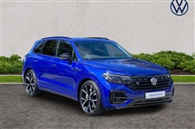 Volkswagen Touareg 3.0 V6 TSI eHybrid 4Motion R 5dr Tip Auto 5 Door in blue, 15"Screen Top infotainment system Premium (MIB3), Adaptive cruise control, Advanced driver attention and drowsiness monitor, Driver profile selection, Dynamic road sign display, E-Sim card for online