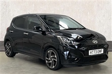 Hyundai i10 1.2 MPi Premium 5dr 5 Door in black, 8"Touchscreen centre console display audio with smart device integration and DAB, Apple car play/Android Auto, Bluetooth connectivity with voice recognition, Cruise control + speed limiter, Driver att