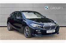 BMW 1 Series 118i [136] M Sport 5dr [Live Cockpit Professional] 5 Door in black, Active guard plus, Attentiveness assist, BMW ConnectedDrive online services, BMW Teleservices, Check Control warning system for monitoring of lights and door/luggage compartment open warning, Cruise c