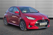 Toyota Yaris 1.5 Hybrid Excel 5dr CVT 5 Door in red, Adaptive cruise control, Adjustable speed limit with speed warning, Blind spot monitoring, Bluetooth connectivity, Colour binocular inspired displays with digital speedometer, E-call, Electric power s