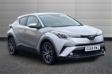 Toyota C-HR 1.8 Hybrid Excel 5dr CVT 5 Door in silver, 4.2"Colour TFT driver information display, Adaptive cruise control, Bluetooth system, Collision prevention assist, Intelligent parking assist with front, rear and side parking sensors, Lane change ass