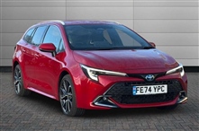 Toyota Corolla Touring Sport 1.8 Hybrid Excel 5dr CVT 5 Door in red, 10.5"Multimedia display screen, 12.3"multi information screen, Adjustable speed limiter, Blind spot monitor and safe exit assist, Bluetooth telephone connectivity, Clock audio and meter, Colour multi