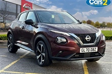 Nissan Juke 1.0 DiG-T Tekna 5dr 5 Door in red, 7"full colour TFT screen combimeter, 8"infotainment colour display with touch screen, Apple CarPlay and Google Android auto, Drive modes select (Eco, normal and sport), Emergency and breakdown call, F