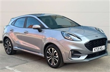 Ford Puma 1.0 EcoBoost Hybrid mHEV ST-Line 5dr 5 Door in silver, Ford easy fuel, Full digital 12.3"instrument cluster, Lane keeping aid with lane departure warning, Power assist steering, Power start button, Rear parking sensor, Selectable drive modes(Normal, sport