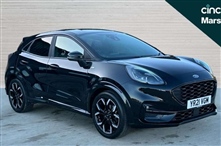 Ford Puma 1.0 EcoBoost Hybrid mHEV 155 ST-Line X 5dr 5 Door in black, Ford easy fuel, Full digital 12.3"instrument cluster, Lane keeping aid with lane departure warning, Power assist steering, Power start button, Rear parking sensor, Selectable drive modes(Normal, Eco,