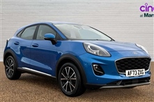 Ford Puma 1.0 EcoBoost Hybrid mHEV Titanium 5dr 5 Door in blue, Driver impairment monitor, Emergency call service, Ford easy fuel, Lane keeping aid with lane departure warning, Power assist steering, Power start button, Rear parking sensor, Selectable drive modes(