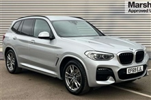 BMW X3 xDrive20d M Sport 5dr Step Auto 5 Door in silver, Active Guard incl speed limiting and lane departure functions with auto steering, and front collision warning with brake intervention, Attentiveness assist, Automatic tailgate operation, BMW Live Cock