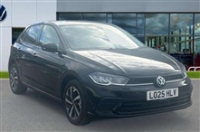 Volkswagen Polo 1.0 TSI Match 5dr DSG 5 Door in black, Advanced driver attention and drowsiness monitor, Bluetooth mobile phone interface, Dynamic road sign display, Emergency call service, Mobile phone preparation with inductive charging function, Multif
