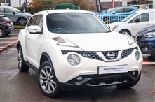 Nissan Juke 1.6 Tekna 5dr Xtronic 5 Door in white, Around View Monitor, Blind spot monitoring, Bluetooth system, Colour rear view camera, Cruise control + speed limiter, Electric speed sensitive power steering, Lane departure warning system, Moving ob