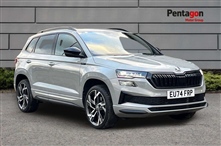 Skoda Karoq 1.5 TSI Sportline 5dr DSG 5 Door in grey, 8"Digital display, Advanced driver attention and drowsiness monitor, Emergency services call system, Outside temperature gauge, Sensor for driver assistance systems, Service interval indicator, SmartL