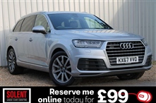 Audi Q7 3.0 TDI Quattro S Line 5dr Tip Auto 5 Door in silver, Audi drive select, Audi smartphone interface, MMI - Multi Media Interface control system, MMI navigation plus with touch and 8"colour display, DVD, SD card reader, 10GB music storage, Mobile phone pre