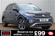 Volkswagen T-Cross 1.0 TSI United 5dr 5 Door in blue, 'Lights On' Reminder warning buzzer, Adaptive cruise control including front assist, forward collision warning, autonomous emergency braking, speed limiter, Bluetooth telephone and audio connection fo