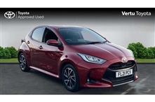 Toyota Yaris 1.5 Hybrid Design 5dr CVT 5 Door in red, Adaptive cruise control, Adjustable speed limit with speed warning, Bluetooth connectivity, Colour binocular inspired displays with digital speedometer, E-call, Electric power steering, Hybrid energy