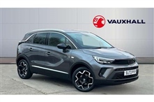 Vauxhall Crossland 1.2 Turbo Ultimate 5dr 5 Door in grey, 3.5"colour instrument display, Audible lights on warning, Cruise control + speed limiter, Digital clock with automatic RDS time adjustment, Driver drowsiness alert system, E-call, Forward collision wa