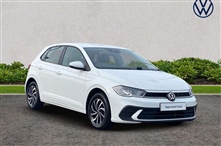 Volkswagen Polo 1.0 TSI Life 5dr 5 Door in white, Adaptive cruise control without follow-to-stop and speed limiter, Bluetooth mobile phone interface, Driver alert system, Emergency call service, Front assist system, Power assisted speed sensitive ste