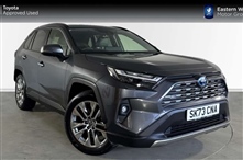 Toyota RAV4 2.5 VVT-i Hybrid Excel 5dr CVT 2WD 5 Door in grey, 12.3"Combimeter, 360 degree panoramic view monitor, Analog tachometer, Apple car play and Android auto, Blind spot monitoring with rear cross traffic alert, Bluetooth system, Cyclist Detection, Drive