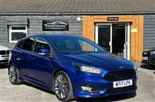 Ford Focus 1.0T EcoBoost ST-Line Hatchback 5dr Petrol Manual Euro 6 (s/s) (125 ps) in Blue, Features Include: , 17in alloy wheels - rock metallic finish, black exterior trim detailing including upper door line and headlamp surround, body colour large rear spoiler and side skirts, body colou