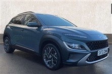 Hyundai Kona 1.6 GDi Hybrid Ultimate 5dr DCT 5 Door in blue, 12.3"touchscreen centre console display satellite navigation with bluelink, live services and mapcare, Blind spot collision avoidance assist, Blind spot view monitor, Bluetooth connectivity with voice