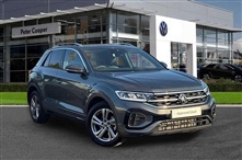 Volkswagen T-Roc 1.5 TSI R-Line 5dr DSG 5 Door in grey, 10.25"Digital cockpit pro, Advanced driver attention and drowsiness monitor, Emergency call service, Lane keeping system Lane Assist, Mobile phone interface, Modified key software - reduce switch off