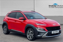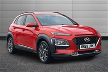 Hyundai Kona 1.6 GDi Hybrid Ultimate 5dr DCT 5 Door in red, 10.25"touchscreen centre console display satellite navigation with live services and mapcare, Blind spot collision avoidance assist, Bluetooth connectivity, Digital clock, Driver attention warning, Dr