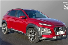 Hyundai Kona 1.6 GDi Hybrid Premium SE 5dr DCT 5 Door in red, 10.25"touchscreen satellite Navigation with Bluelink and Mapcare, Blind spot monitoring, Bluetooth system, Cruise control + speed limiter, Digital clock, Drive mode selector, Driver attention alert sy