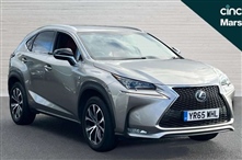 Lexus NX 300h 2.5 F-Sport 5dr CVT 5 Door in silver, Adaptive cruise control + pre-crash system, Analogue clock, Bluetooth telephone connectivity, Drive mode selector, Front and rear parking sensors, Multimedia display, PAS, Push button starter, Reversi