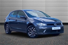 Volkswagen Polo 1.0 TSI Life 5dr 5 Door in grey, Adaptive cruise control without follow-to-stop and speed limiter, Bluetooth mobile phone interface, Driver alert system, Emergency call service, Front assist system, Power assisted speed sensitive ste