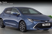 Toyota Corolla 1.8 VVT-i Hybrid Excel 5dr CVT 5 Door in blue, 7"Multi information display screen, Bluetooth telephone connectivity, Connected car functionality upgrade, tracker, remote status and e-care, Dynamic radar cruise control (with RSA) including switch o