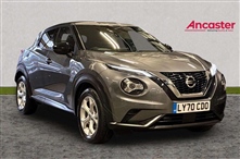 Nissan Juke 1.0 DiG-T 114 N-Connecta 5dr 5 Door in grey, Alarm, Immobiliser, Intelligent Key with push button starter, Remote central locking, 6 speakers, Bluetooth system, USB, Aux-in and 12V socket, DAB Digital radio, Rear console USB port, ABS with EBD a