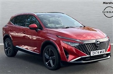 Nissan Qashqai 1.5 E-Power Tekna+ 5dr Auto 5 Door in red, Advanced windscreen head up display, Blind spot warning, Drive modes (sport, normal, eco), e-Pedal step, Electric speed sensitive power steering, Emergency and breakdown call, Front and rear parking s
