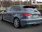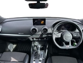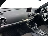 Audi connect, Audi drive select, Audi smartphone interface, Automatic start/stop system, Colour driver's information system display, Electro - mechanical power assisted steering, Mobile telephone preparation - bluetooth interface, SD card based satellite navigation system, Service interval indicator, Speed limit display, Voice control system, Voice recognition for navigation system, 2 USB interfaces and Aux-In jack, Audi music interface, CD player, DAB Digital radio, MMI radio plus with 7"colour MMI screen and MMI controller, Auto dimming rear view mirror with light and rain sensors, Black door mirrors, Body colour roof spoiler with aerodynamic inserts in high gloss black, Chrome exhaust tailpipes, Electric front windows, Electric rear windows, Electrically adjustable and heated door mirrors with integrated LED side indicators, Heated windscreen washer jets, LED daytime running lights, Privacy glass - dark tinted rear and rear side windows from B-pillar backwards, Rear wiper, Sport specific side air inlet grille and diffuser insert, 3 adjustable rear headrests, 4 lashing points to secure luggage, Adjustable front centre armrest, Black cloth headlining, Dual zone electronic climate control, Front and rear interior lights with delay, Front/rear floor mats, Glovebox light, Height and reach adjustable steering wheel, Illuminated door sill trims with S logo, Isofix child seat preparation for front passenger/outer rear seats inc passenger airbag deactivation, Stainless steel pedals, Storage compartments in doors side trims, centre console and under front drivers seat, Black styling pack - A3/S3, LED interior light pack - A3/RS3, Non smoking pack - A3, Storage and luggage pack - A3/RS3, 3 point seatbelts on all seats, ABS/EBD, Active bonnet, Active front headrests, Airbags - front driver/passenger, front & rear side, curtain, drivers knee, ASR, EDL, Electromechanical parking brake, ESC - Electronic Stability Control + traction control, Front passenger airbag deactivation, Hill hold assist, Manual rear child locks, Multi-Collision braking, Seatbelt warning, Tyre pressure warning, Warning triangle and first aid kit, Anti theft alarm, Anti-theft wheel bolts, Remote control central locking, Thatcham category 1 alarm + immobiliser, Aluminium air vent surrounds, Aluminium trim elements, Matt brushed aluminium inlays, 18"10 spoke design alloy wheels in matt titanium look with diamond cut finish, Tool kit, Tyre repair kit,