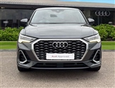 Audi connect safety and service (e-call), Audi drive select, Audi lane departure warning, Audi smartphone interface includes wireless Apple carplay/Android Auto, Audi Virtual Cockpit - 10.25"display, Bluetooth interface, Camera based traffic sign recognition, Cruise control + speed limiter, MMI Navigation Plus with high resolution 10.1 inch touchscreen colour display, Power operated tailgate, Progressive steering, Rear parking sensors, Service interval indicator, Start stop system with recuperation, Voice control system with natural language interaction, Sports suspension, 2 USB-C ports with charge and data functions, 6 passive loudspeakers, DAB digital radio module, Acoustic windscreen, Aluminium window trim, Auto dimming frameless rear view mirror, Diffuser grille in grained matt black, Diffuser trim in selenite silver, Electrically folding, adjustable and heated door mirrors with integrated LED side indicators and kerb view function for passenger side, Front and rear electric windows, Front fog lights, Front side air inlets in selenite silver, Front underbody protection in manhattan grey paint finish, Grille surround in aluminium silver matt, High gloss black finish B and C pillars, LED headlights with LED daytime running lights and dynamic rear indicator, LED rear lights, Privacy glass dark tinted rear and rear-side windows (from B-pillar backwards), Radiator grille in titanium black with inlay in matt aluminium silver, Rain and light sensors, Rear underbody protection in matt black, S line badges on front wings, Side skirt insert in matt Platinium grey, 12V socket in rear centre console, 40:20:40 folding with manual adjustment for 60:40 forwards/backwards position and backrest angle, Adjustable rear seat bench/backrest with centre armrest and cupholder, Black cloth headlining, Dual zone electronic climate control, Front and rear black floor mats with contrast stitching, Front and rear headrests, Front and rear roof module including reading lights, Front centre armrest, Glove compartment lighting, Height and reach adjustable steering wheel, Illuminated door sill trims with S logo, ISOFIX child seat mounting for front passenger with airbag deactivation and outer rear seat including top tether attachment point for outer rear seats, Luggage compartment light, Manual front seats with height adjustment, Perforated leather gearknob, Stainless steel luggage compartment sill finisher, Stainless steel pedals, Non smoking pack - Q3, 3x3 point rear seatbelts, 6 airbags - Driver, front passenger, curtain and side windows, Audi pre-sense front with pedestrain and cyclist recognition, Electrically operated child locks on rear doors, Electromechanical parking brake, Electronic stabilisation control including ABS, ASR and EDL, Hill descent control, Hill hold assist, Pre sense basic, Seatbelt monitoring, Tyre pressure warning, Warning triangle and first aid kit, Anti theft alarm, Anti theft wheel bolts, Remote central locking, Black dashboard, Dark matt brushed aluminium inlay, Detail dashboard around MMI touch colour display in glass look, black with surround in aluminium look, Leatherette door armrest,