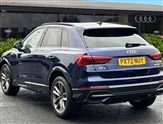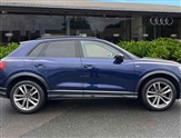 Amazon alexa Integration, Audi drive select, Audi lane departure warning, Audi Virtual Cockpit - 10.25"display, Bluetooth interface, Camera based traffic sign recognition, Legal emergency call, MMI Navigation Plus with high resolution 10.1 inch touchscreen colour display, Power operated tailgate, Progressive steering, Service interval indicator, Smartphone interface includes wireless Apple carplay/Android Auto, Start stop system with recuperation, Voice control system with natural language interaction, Diesel particulate filter, Sports suspension, 2 USB-C ports with charge and data functions, 6 passive loudspeakers, DAB digital radio module, Acoustic windscreen, Auto dimming frameless rear view mirror, Black roof rails, Electrically folding, adjustable and heated door mirrors with integrated LED side indicators and kerb view function for passenger side, Front and rear electric windows, Front fog lights, Grille vertical bars in aluminium silver/Matt, High gloss black finish B and C pillars, LED headlights with LED daytime running lights, LED rear lights, LED third brake light, Privacy glass dark tinted rear and rear-side windows (from B-pillar backwards), Rain and light sensors, Rear diffuser grille in grained matt black, Rear diffuser strip in matt titanium black, Rear side wing doors, Rear wiper, S line bumpers in contrasting Manhattan grey, Variable front intermittent wipers, 12V socket in rear centre console, 3 seat bench in 2nd row, 40:20:40 folding with manual adjustment for 60:40 forwards/backwards position and backrest angle, Adjustable rear seat bench/backrest with centre armrest and cupholder, Black cloth headlining, Dual zone electronic climate control, Front and rear black floor mats with contrast stitching in rock grey, Front and rear headrests, Front and rear roof module including reading lights, Front centre armrest, Glove compartment lighting, Height and reach adjustable steering wheel, Illuminated door sill trims with S logo, ISOFIX child seat mounting for front passenger with airbag deactivation and outer rear seat including top tether attachment point for outer rear seats, Luggage compartment light, Manual front seats with height adjustment, Perforated leather gearknob, Single front passenger seat, Stainless steel luggage compartment sill finisher, Stainless steel pedals, Black styling pack - Q3, Non smoking pack - Q3, 3x3 point rear seatbelts, 6 airbags - Driver, front passenger, curtain and side windows, Audi pre-sense front with pedestrain and cyclist recognition, Electromechanical parking brake, Electronic stabilisation control including ABS, ASR and EDL, Front seatbelt reminder, Hill descent control, Hill hold assist, Manual child lock in rear doors, Pre sense basic, Seatbelt monitoring, Tyre pressure warning, Warning triangle and first aid kit, Anti theft alarm, Anti theft wheel bolts, Immobiliser, Remote central locking, Detail dashboard around MMI touch colour display in glass look, black with surround in aluminium look, Leatherette door armrest, Piano black inlay,