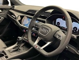 Amazon alexa Integration, Audi connect safety and service, Audi drive select, Audi lane departure warning, Audi smartphone interface includes wireless Apple carplay/Android Auto, Audi Virtual Cockpit - 10.25"display, Bluetooth interface, Camera based traffic sign recognition, Distraction and Fatigue warning, Legal emergency call, MMI Navigation Plus with high resolution 10.1 inch touchscreen colour display, Power operated tailgate, Progressive steering, Service interval indicator, Start stop system with recuperation, Voice control system with natural language interaction, Sports suspension, 2 USB-C ports with charge and data functions, 6 passive loudspeakers, DAB digital radio module, Acoustic windscreen, Anthracite black radiator grille, Audi Beam uses LEDs to project the Audi logo onto the ground as you exit your Q3, Auto dimming door mirrors, Auto dimming frameless rear view mirror, Black roof rails, Electrically folding, adjustable and heated door mirrors with integrated LED side indicators and kerb view function for passenger side, Front and rear electric windows, Front fog lights, Grille vertical bars in aluminium silver/Matt, High gloss black finish B and C pillars, LED Dynamic rear indicators, LED headlights with LED daytime running lights, LED rear lights, LED third brake light, Privacy glass dark tinted rear and rear-side windows (from B-pillar backwards), Rain and light sensors, Rear diffuser grille in grained matt black, Rear diffuser strip in matt anthracite black, Rear side wing doors, Rear wiper, S line bumpers in contrasting Manhattan grey, Variable front intermittent wipers, 12V socket in rear centre console, 3 seat bench in 2nd row, 40:20:40 folding with manual adjustment for 60:40 forwards/backwards position and backrest angle, Adjustable rear seat bench/backrest with centre armrest and cupholder, Black carpet mats, Black cloth headlining, Dual zone electronic climate control, Electric lumbar support, Front and rear black floor mats with contrast stitching in rock grey, Front and rear headrests, Front centre armrest, Height and reach adjustable steering wheel, Illuminated door sill trims with S logo, ISOFIX child seat mounting for front passenger with airbag deactivation and outer rear seat including top tether attachment point for outer rear seats, Luggage compartment sill protection in stainless steel, Manual front seats with height adjustment, Perforated leather gearknob, Single front passenger seat, Stainless steel pedals, Twin leather upholstery with front sport seats + S embossing, Black styling pack - Q3, Non smoking pack - Q3, 3x3 point rear seatbelts, 6 airbags - Driver, front passenger, curtain and side windows, Audi pre-sense front with pedestrain and cyclist recognition, Electrically operated child locks on rear doors, Electromechanical parking brake, Electronic stabilisation control including ABS, ASR and EDL, Front seatbelt reminder, Hill descent control, Hill hold assist, Pre sense basic, Seatbelt monitoring, Tyre pressure warning, Warning triangle and first aid kit, Anti theft wheel bolts, Immobiliser, Remote central locking, Thatcham approved category 1 anti theft alarm, Aluminium look interior elements, Detail dashboard around MMI touch colour display in glass look, black with surround in aluminium look, Leatherette door armrest, Piano black inlay,