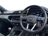 Amazon alexa Integration, Audi drive select, Audi lane departure warning, Audi Virtual Cockpit - 10.25"display, Bluetooth interface, Camera based traffic sign recognition, Cruise control + speed limiter, Legal emergency call, MMI Navigation Plus with high resolution 10.1 inch touchscreen colour display, Power operated tailgate, Progressive steering, Rear parking sensors, Service interval indicator, Smartphone interface includes wireless Apple carplay/Android Auto, Start stop system with recuperation, Voice control system with natural language interaction, Sports suspension, 2 USB-C ports with charge and data functions, 6 passive loudspeakers, DAB digital radio module, Acoustic windscreen, Aluminium roof rails, Aluminium window trim, Anthracite black radiator grille, Auto dimming frameless rear view mirror, Body colour front spoiler blade, Body coloured bumpers, Electrically folding, adjustable and heated door mirrors with integrated LED side indicators and kerb view function for passenger side, Front and rear electric windows, Front fog lights, Front side air inlets in matt platinum grey, Grille vertical bars in aluminium silver/Matt, High gloss black finish B and C pillars, LED Dynamic rear indicators, LED headlights with LED daytime running lights, LED rear lights, LED third brake light, Privacy glass dark tinted rear and rear-side windows (from B-pillar backwards), Rain and light sensors, Rear diffuser grille in grained matt black, Rear diffuser strip in matt anthracite black, Rear side wing doors, Rear wiper, S line badges on front wings, S Line front and rear bumpers, Side skirt insert in matt Platinium grey, Variable front intermittent wipers, 12V socket in rear centre console, 3 seat bench in 2nd row, 3 spoke leather multifunction steering wheel features S badging and grips in perforated leather with contrast stitching, 40:20:40 folding with manual adjustment for 60:40 forwards/backwards position and backrest angle, Adjustable rear seat bench/backrest with centre armrest and cupholder, Black cloth headlining, Dual zone electronic climate control, Front and rear black floor mats with contrast stitching in rock grey, Front and rear headrests, Front and rear roof module including reading lights, Front centre armrest, Glove compartment lighting, Height and reach adjustable steering wheel, Illuminated door sill trims with S logo, ISOFIX child seat mounting for front passenger with airbag deactivation and outer rear seat including top tether attachment point for outer rear seats, Luggage compartment light, Manual front seats with height adjustment, Perforated leather gearknob, Single front passenger seat, Stainless steel luggage compartment sill finisher, Stainless steel pedals, Ambient lighting pack - Q3, Non smoking pack - Q3, 3x3 point rear seatbelts, 6 airbags - Driver, front passenger, curtain and side windows, Audi pre-sense front with pedestrain and cyclist recognition, Electrically operated child locks on rear doors, Electromechanical parking brake, Electronic stabilisation control including ABS, ASR and EDL, Front seatbelt reminder, Hill descent control, Hill hold assist, Pre sense basic, Seatbelt monitoring, Tyre pressure warning, Warning triangle and first aid kit, Anti theft alarm, Anti theft wheel bolts, Immobiliser, Remote central locking, Aluminium look interior elements, Dark matt brushed aluminium inlay, Detail dashboard around MMI touch colour display in glass look, black with surround in aluminium look, Leatherette door armrest,