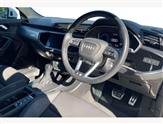 Audi connect safety and service (e-call), Audi drive select, Audi lane departure warning, Audi side assist, Audi smartphone interface includes wireless Apple carplay/Android Auto, Audi Virtual Cockpit - 10.25"display, Bluetooth interface, Camera based traffic sign recognition, MMI Navigation Plus with high resolution 10.1 inch touchscreen colour display, Power operated tailgate, Progressive steering, Service interval indicator, Start stop system with recuperation, Voice control system with natural language interaction, 48V Mild hybrid technology, Sports suspension, 1 x USB type C and 1 USB type A charging points, 6 passive loudspeakers, DAB digital radio module, Acoustic windscreen, Aluminium roof rails, Aluminium window trim, Auto dimming frameless rear view mirror, Body coloured bumpers, Electrically folding, adjustable and heated door mirrors with integrated LED side indicators and kerb view function for passenger side, Front and rear electric windows, Front fog lights, Front side air inlets in matt platinum grey, Front spoiler blade in matt platinum grey, Grille vertical bars in aluminium silver/Matt, High gloss black finish B and C pillars, LED headlights with LED daytime running lights and dynamic rear indicator, LED rear lights, Privacy glass dark tinted rear and rear-side windows (from B-pillar backwards), Rain and light sensors, Rear diffuser strip in matt titanium black, S line badges on front wings, S Line front and rear bumpers, Side skirt insert in matt Platinium grey, Silver chrome grille surround, Titanium black radiator grille, 12V socket in rear centre console, 40:20:40 folding with manual adjustment for 60:40 forwards/backwards position and backrest angle, Adjustable rear seat bench/backrest with centre armrest and cupholder, Black cloth headlining, Dual zone electronic climate control, Front and rear black floor mats with contrast stitching in rock grey, Front and rear headrests, Front and rear roof module including reading lights, Front centre armrest, Glove compartment lighting, Height and reach adjustable steering wheel, Illuminated door sill trims with S logo, ISOFIX child seat mounting for front passenger with airbag deactivation and outer rear seat including top tether attachment point for outer rear seats, Luggage compartment light, Manual front seats with height adjustment, Perforated leather gearknob, Stainless steel luggage compartment sill finisher, Stainless steel pedals, Tool kit, Non smoking pack - Q3, 3x3 point rear seatbelts, 6 airbags - Driver, front passenger, curtain and side windows, Audi pre-sense front with pedestrain and cyclist recognition, Electrically operated child locks on rear doors, Electromechanical parking brake, Electronic stabilisation control including ABS, ASR and EDL, Hill descent control, Hill hold assist, Pre sense basic, Seatbelt monitoring, Tyre pressure warning, Warning triangle and first aid kit, Anti theft alarm, Anti theft wheel bolts, Remote central locking, Dark matt brushed aluminium inlay, Detail dashboard around MMI touch colour display in glass look, black with surround in aluminium look, Leatherette door armrest, Tyre repair kit,