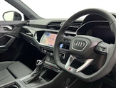 Amazon alexa Integration, Audi connect safety and service, Audi drive select, Audi lane departure warning, Audi smartphone interface includes wireless Apple carplay/Android Auto, Audi Virtual Cockpit - 10.25"display, Bluetooth interface, Camera based traffic sign recognition, Distraction and Fatigue warning, Legal emergency call, MMI Navigation Plus with high resolution 10.1 inch touchscreen colour display, Power operated tailgate, Progressive steering, Service interval indicator, Start stop system with recuperation, Voice control system with natural language interaction, Sports suspension, 2 USB-C ports with charge and data functions, 6 passive loudspeakers, DAB digital radio module, Acoustic windscreen, Anthracite black radiator grille, Audi Beam uses LEDs to project the Audi logo onto the ground as you exit your Q3, Auto dimming door mirrors, Auto dimming frameless rear view mirror, Black roof rails, Electrically folding, adjustable and heated door mirrors with integrated LED side indicators and kerb view function for passenger side, Front and rear electric windows, Front fog lights, Grille vertical bars in aluminium silver/Matt, High gloss black finish B and C pillars, LED Dynamic rear indicators, LED headlights with LED daytime running lights, LED rear lights, LED third brake light, Privacy glass dark tinted rear and rear-side windows (from B-pillar backwards), Rain and light sensors, Rear diffuser grille in grained matt black, Rear diffuser strip in matt anthracite black, Rear side wing doors, Rear wiper, S line bumpers in contrasting Manhattan grey, Variable front intermittent wipers, 12V socket in rear centre console, 3 seat bench in 2nd row, 40:20:40 folding with manual adjustment for 60:40 forwards/backwards position and backrest angle, Adjustable rear seat bench/backrest with centre armrest and cupholder, Black carpet mats, Black cloth headlining, Dual zone electronic climate control, Electric lumbar support, Front and rear black floor mats with contrast stitching in rock grey, Front and rear headrests, Front centre armrest, Height and reach adjustable steering wheel, Illuminated door sill trims with S logo, ISOFIX child seat mounting for front passenger with airbag deactivation and outer rear seat including top tether attachment point for outer rear seats, Luggage compartment sill protection in stainless steel, Manual front seats with height adjustment, Perforated leather gearknob, Single front passenger seat, Stainless steel pedals, Twin leather upholstery with front sport seats + S embossing, Black styling pack - Q3, Non smoking pack - Q3, 3x3 point rear seatbelts, 6 airbags - Driver, front passenger, curtain and side windows, Audi pre-sense front with pedestrain and cyclist recognition, Electrically operated child locks on rear doors, Electromechanical parking brake, Electronic stabilisation control including ABS, ASR and EDL, Front seatbelt reminder, Hill descent control, Hill hold assist, Pre sense basic, Seatbelt monitoring, Tyre pressure warning, Warning triangle and first aid kit, Anti theft wheel bolts, Immobiliser, Remote central locking, Thatcham approved category 1 anti theft alarm, Aluminium look interior elements, Detail dashboard around MMI touch colour display in glass look, black with surround in aluminium look, Leatherette door armrest, Piano black inlay,