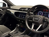 360 degree parking camera, Audi connect safety and service (e-call), Audi drive select, Audi lane departure warning, Audi phone box with wireless charging, Audi side assist, Audi virtual cockpit plus, Bluetooth interface, Camera based traffic sign recognition, MMI Navigation Plus with high resolution 10.1 inch touchscreen colour display, Power operated tailgate, Progressive steering, Rear cross traffic alert, Service interval indicator, Smartphone interface includes wireless Apple carplay/Android Auto, Start stop system with recuperation, Voice control system with natural language interaction, Adaptive suspension with damping control, Diesel particulate filter, 2 USB-C ports with charge and data functions, Bang + Olufsen 3D sound system, DAB digital radio module, Acoustic windscreen, Audi Beam uses LEDs to project the Audi Sport logo, Auto dimming door mirrors, Auto dimming frameless rear view mirror, Black roof rails, Electrically folding, adjustable and heated door mirrors with integrated LED side indicators and kerb view function for passenger side, Front and rear electric windows, Front fog lights, Front spoiler blade in matt platinum grey, Headlight washers, High gloss black finish B and C pillars, Matrix LED headlights with LED rear lights and dynamic front and rear indicator, Panoramic opening glass sunroof, Privacy glass dark tinted rear and rear-side windows (from B-pillar backwards), Rain and light sensors, Rear diffuser strip in matt titanium black, S line bumpers in contrasting Manhattan grey, 12V socket in rear centre console, 4 way electric lumbar support for driver and front passenger, 40:20:40 folding with manual adjustment for 60:40 forwards/backwards position and backrest angle, Adjustable rear seat bench/backrest with centre armrest and cupholder, Black cloth headlining, Dual zone electronic climate control, Electrically adjustable front seats, Front and rear black floor mats with contrast stitching in rock grey, Front and rear headrests, Front and rear roof module including reading lights, Front centre armrest, Glove compartment lighting, Heated front seats, Height and reach adjustable steering wheel, Illuminated door sill trims with S logo, ISOFIX child seat mounting for front passenger with airbag deactivation and outer rear seat including top tether attachment point for outer rear seats, Leather steering wheel in 3-spoke design with multifunction plus and shift paddles, Luggage compartment light, Perforated leather gearknob, Stainless steel luggage compartment sill finisher, Stainless steel pedals, Black styling pack - Q3, Driver Assistance Pack - Q3, Multi coloured extended ambient interior lighting pack - Q3, Non smoking pack - Q3, 3x3 point rear seatbelts, 6 airbags - Driver, front passenger, curtain and side windows, Audi pre-sense front with pedestrain and cyclist recognition, Electrically operated child locks on rear doors, Electromechanical parking brake, Electronic stabilisation control including ABS, ASR and EDL, Hill descent control, Hill hold assist, Pre sense basic, Seatbelt monitoring, Tyre pressure warning, Warning triangle and first aid kit, Advanced key, Anti theft alarm, Anti theft wheel bolts, Remote central locking, Detail dashboard around MMI touch colour display in glass look, black with surround in aluminium look, Leatherette door armrest,