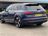 Audi connect safety and service (e-call), Audi connect with Amazon Alexa Integration, Audi drive select (Auto, Comfort, Dynamic, Efficiency, Individual, Off-road and All road), Bluetooth interface, Camera based traffic sign recognition, Electromechanical steering, MMI navigation plus with MMI touch screens includes 10.1"and 8.6"screens with haptic feedback, Natural voice recognition, Parking system plus with 360 degree display (front, rear and side sensors) - acoustic and visual park assist system, Power operated tailgate, Rear view camera, Smartphone interface includes wireless Apple carplay/Android Auto, Start/stop system, 48V Mild hybrid technology, 85 litre fuel tank, Adaptive air sports suspension, Quattro all wheel drive with self locking centre differential, Audi music interface - front 2 USB-C ports with charger and data functions, Audi sound system with 6 channel amplifier, 180 watt amplifying capacity and 10 loudspeakers including subwoofer, DAB digital radio module, 3rd brake light, Audi matrix LED headlights with dynamic front and rear indicators, Auto dimming frameless rear view mirror, Black roof rails, Bumpers in contrast paint scandium grey finish includes door trim and wheel arch trim strips, inlays in door strip contain quattro embossing, Electrically adj heated/folding + automatically dimming exterior mirrors with memory + automatic kerb side function for passenger side exterior mirror, Heat insulating glass in windshield, Integrated LED indications in door mirrors, LED daytime running lights, LED rear tail lights, Privacy glass - dark tinted rear and rear side windows from B-pillar backwards, Rear side wing doors, Rear wiper, 2 seat bench in 3rd row, 3 seat bench in 2nd row, 4 zone deluxe automatic climate control, 7 seat layout with ISOFIX points for the front passenger seat and rear passenger seat, Black cloth headlining, Comfort front centre armrest, Electric adjustable front seat with 4 way lumbar support, driver memory functionality, Folding rear seats, Front head restraints, Front/rear floor mats, Heated front seats, Illuminated door sill trims with S logo, LED interior ambient lighting, Luggage compartment cover, Luggage compartment sill protection in stainless steel, Rear head restraints, Single front passenger seat, Stainless steel pedals, Sunvisors with illuminated vanity mirrors, Titanium black styling pack - Q7/SQ7, 3 point seatbelts on all rear seats, Audi pre sense front, Child locks on rear doors, Driver and front passenger, front side and curtain airbags, Electromechanical parking brake, Electronic Stabilisation Control (ESC) including ABS, ASR and EDL, Extended pedestrian protection measures, Hill hold assist, Seatbelt monitoring, Tyre pressure loss indicator, Warning triangle and first aid kit, Anti theft alarm, Anti-theft wheel bolts and wheel loosening detection, Keyless Go, Remote central locking, Polished oak trim with grey finish inlay, Tool kit, Tyre repair kit,